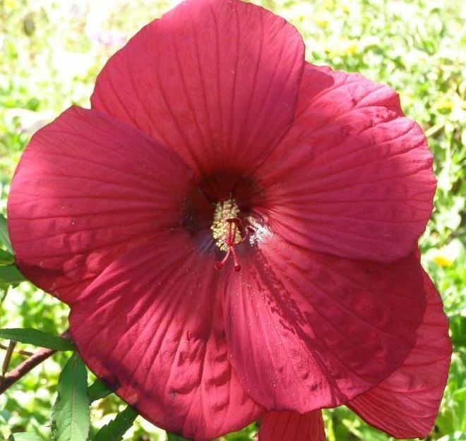 Морозистійка світлолюбна рослина, що досягає до двох із половиною метра росту. У нього прямі щільні дула, але густота листя трохи поступається іншим типам гібіскусу. Зате йому притаманні набагато більші за розміром квіти та листя. Останні схожі на собою листя соняшнику. Культура є листопадною. Ця рослина невибаглива і для її пересадки годиться й весна, і осінь. Молоді пагони бажано прищиповувати для майбутньої густоти суцвіття. Пам'ятайте, що в півтіні його суцвіття не такі потужні. Висота рослини до 1 м, квітки до 35 см.